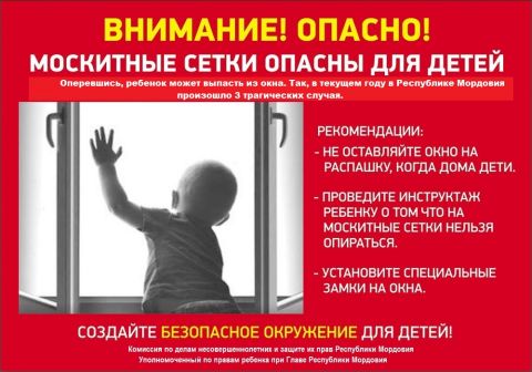 окна; постоянно напоминать детям о том, что нельзя опираться на москитные