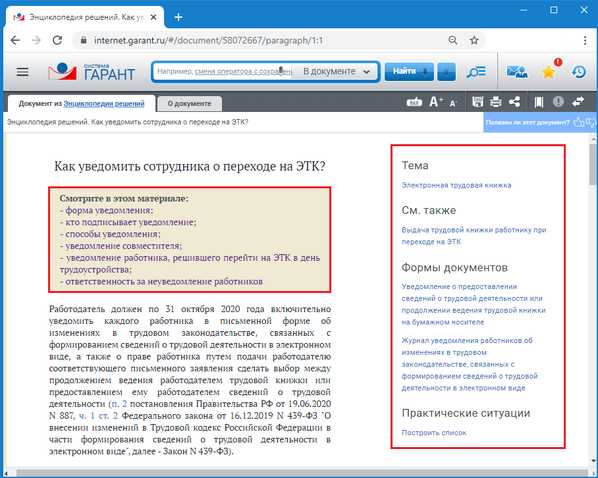 По ссылкам в правой части экрана можно перейти к смежным темам и уточнить детали.