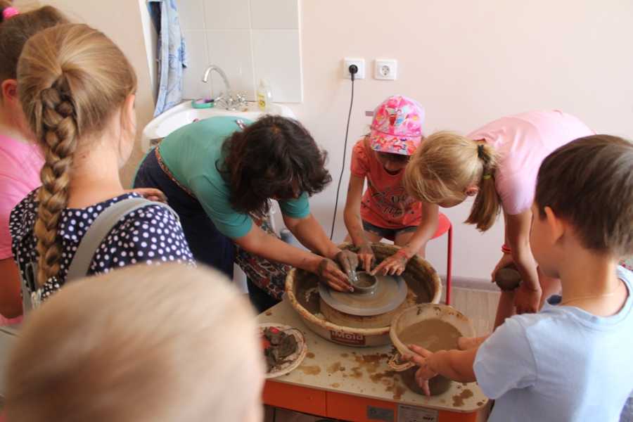 Кроме игр в отделении дневного пребывания ребята посещали студию гончарного ремесла и детскую библиотеку, расположенные в МБУК «Центр культуры» Старошайговского муниципального района. Преподаватель студии Коркина Людмила Ильинична в ходе мастер-класса рассказала об истории гончарного ремесла, познакомила детей с оборудованием для гончарного дела (печь, гончарный круг), продемонстрировала кручение посуды за гончарным кругом. Дети собственноручно попробовали создать посуду за гончарным станком. Ребятам понравилось это увлекательное занятие, многие даже изъявили желание записаться в студию гончарного ремесла.Сотрудники библиотеки проводили для ребят интересные викторины, а также знакомили с новинками детской литературы. Интересно и познавательно проходили такие встречи. Активное участие дети группы кратковременного пребывания приняли в спортивном мероприятии, посвященном Всероссийскому дню физкультурника, который проходил на территории детско-юношеской спортивной школы Старошайговского района. И в результате они, как настоящие спортсмены, были награждены почетными грамотами и подарками.
