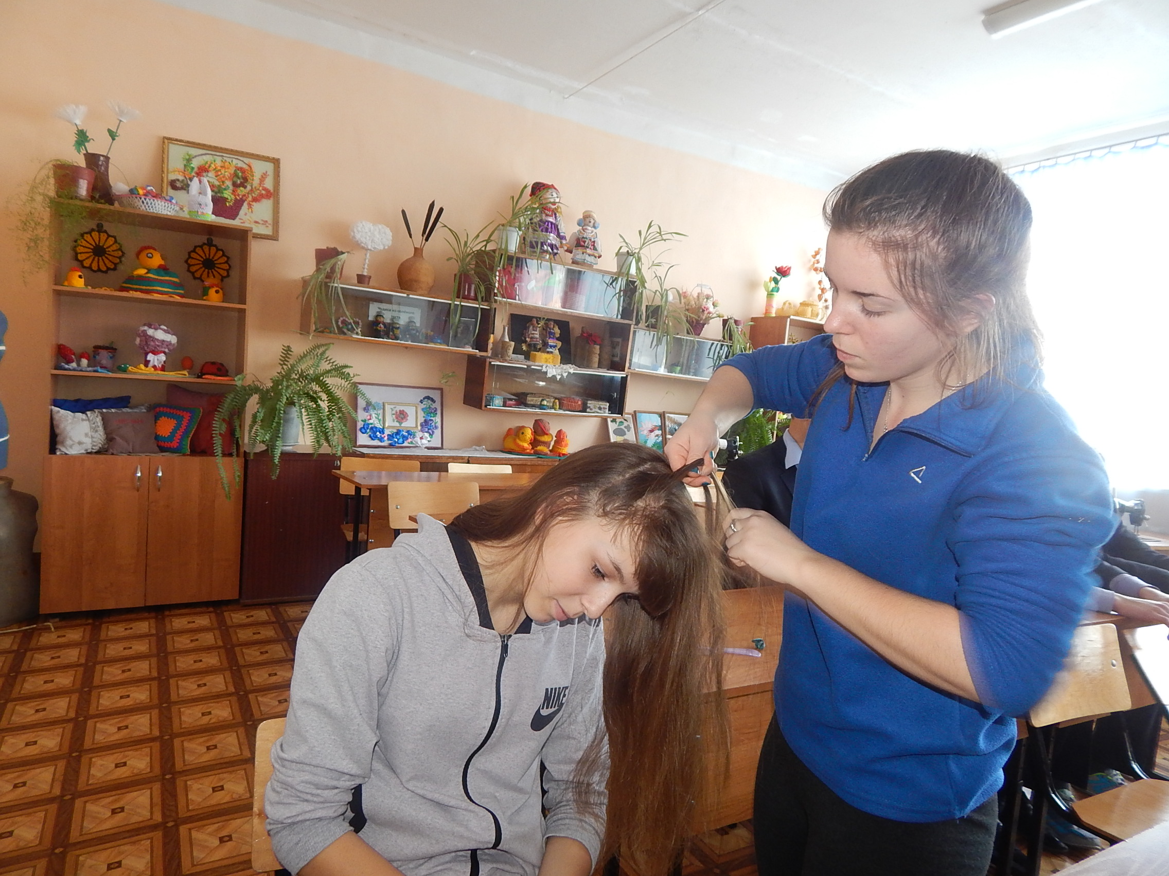 7. Станция «Парикмахер-стилист» организованная ИП Шестакова Р.А. На данной площадке учащиеся учились парикмахерскому искусству, плетению косы.