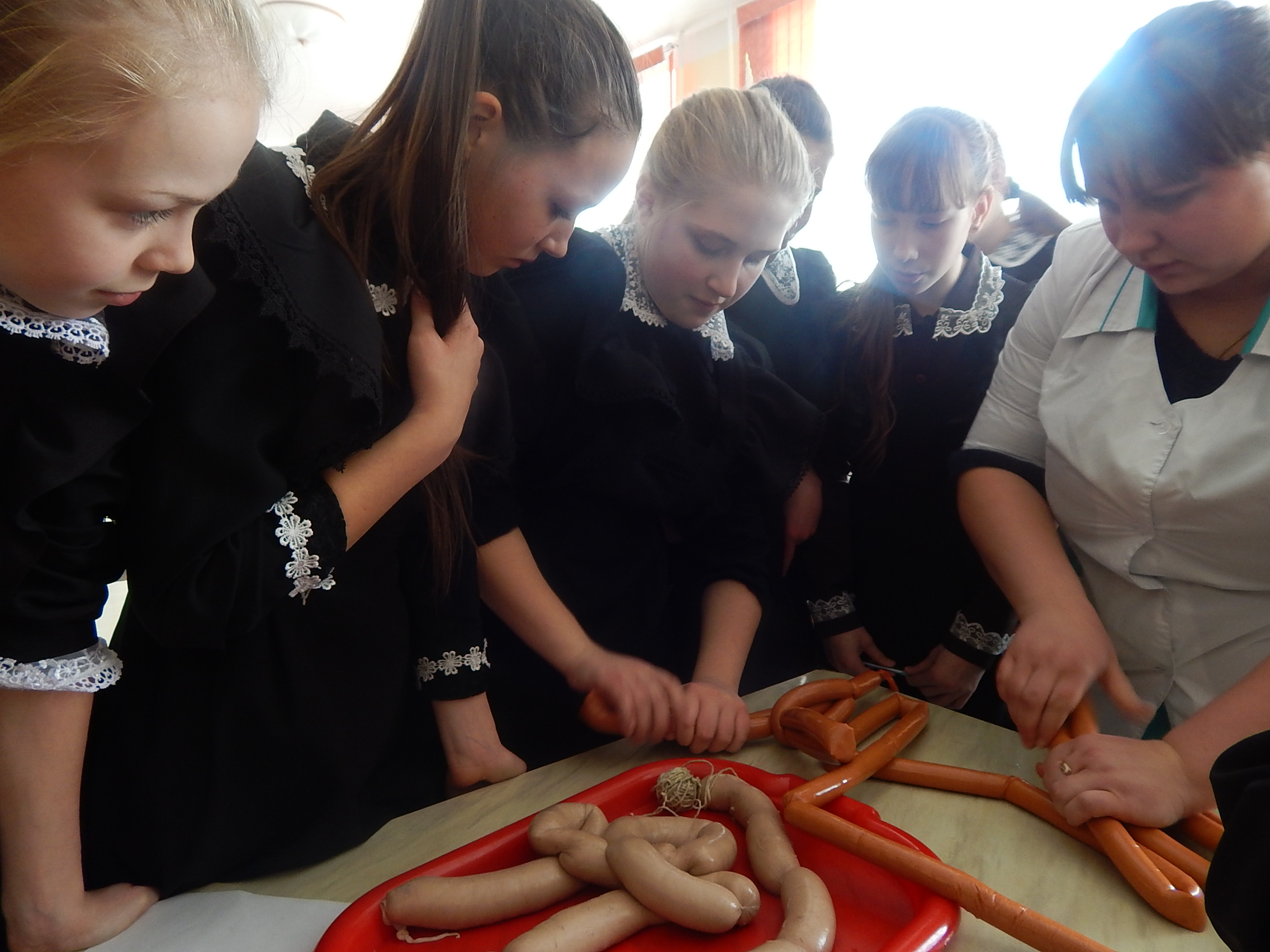 8. Станция «Технология производства» была организована ИП Пьяных О.Н. (колбасный цех). Технолог колбасного цеха провела с участниками мастер-класс по формированию сосисок.