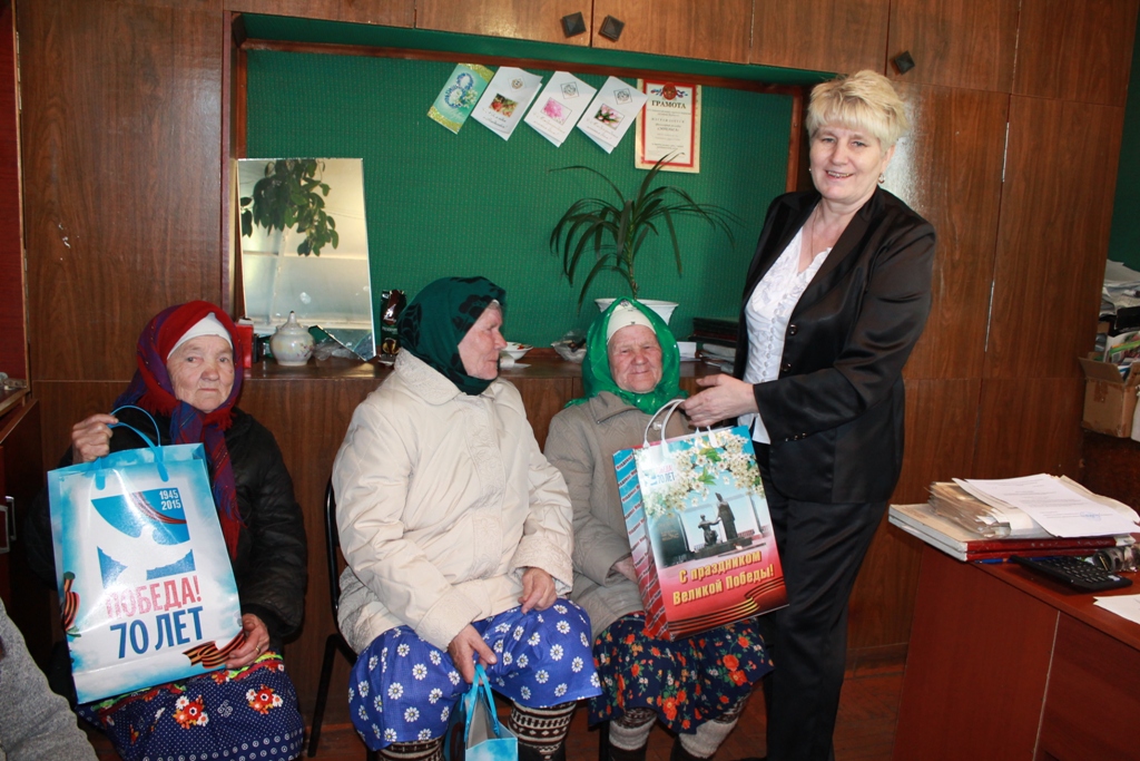 Накануне 9 мая директор ГКУ «Соцзащита населения по Старошайговскому району РМ» Наталья Васильевна Гришина, заместитель директора Татьяна Николаевна Шишканова, заведующая отделением срочной социальной помощи Нина Дмитриевна Голованова, специалисты отделений осуществили выезды во все сельские поселения района. 13 участникам Великой Отечественной войны нашего района были лично вручены поздравления и подарки от Главы Республики Мордовия Владимира Дмитриевича Волкова, главы администрации Старошайговского муниципального района Геннадия Александровича Мухина, депутата Государственного собрания Республики Мордовия, члена партии «Единая Россия» Анатолия Ивановича Фролова. Также подарки от Главы Республики Мордовия получили 387 тружеников тыла - продуктовые наборы, а 75 вдов - Павлопосадские платки. Подарки были вручены адресно, лично в руки всем ветеранам Великой Отечественной войны. Большую помощь в поздравлении ветеранов оказали главы и специалисты сельских поселений. Директор ГКУ «Соцзащита населения по Старошайговскому району РМ» Наталья Васильевна Гришина посетила Старошайговский дом – интернат и поздравила тружеников тыла, проживающих в нем.